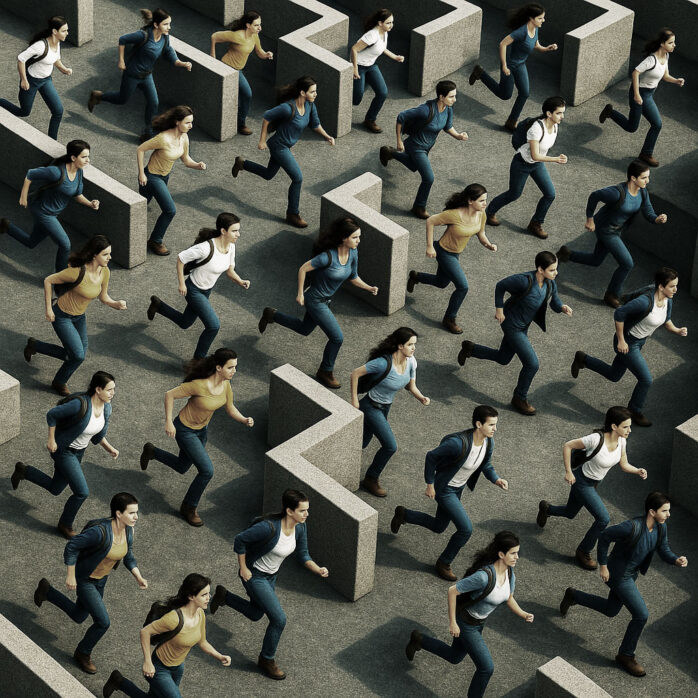 In this high-stakes environment, the pressure to succeed can become overwhelming. The relentless pursuit of grades and rankings, once seen as a means to an end, has, for many, become an end in itself. This shift of student focus from learning to grade metrics reflects not merely changing learner attitudes but also a rational response on the part of learners to a system that increasingly values quantifiable outcomes over holistic development. The problem can begin before some students step foot in the classroom, with the admission process functioning to favor learners who thrive on pressure and competition. This is yet another area where learners may blame themselves for outcomes that are not their fault.[v] As educators and policymakers grapple with these challenges, it becomes clear that a fundamental reevaluation of higher education is necessary. The goal should not eliminate competition entirely but create a more equitable system that keeps it in perspective.